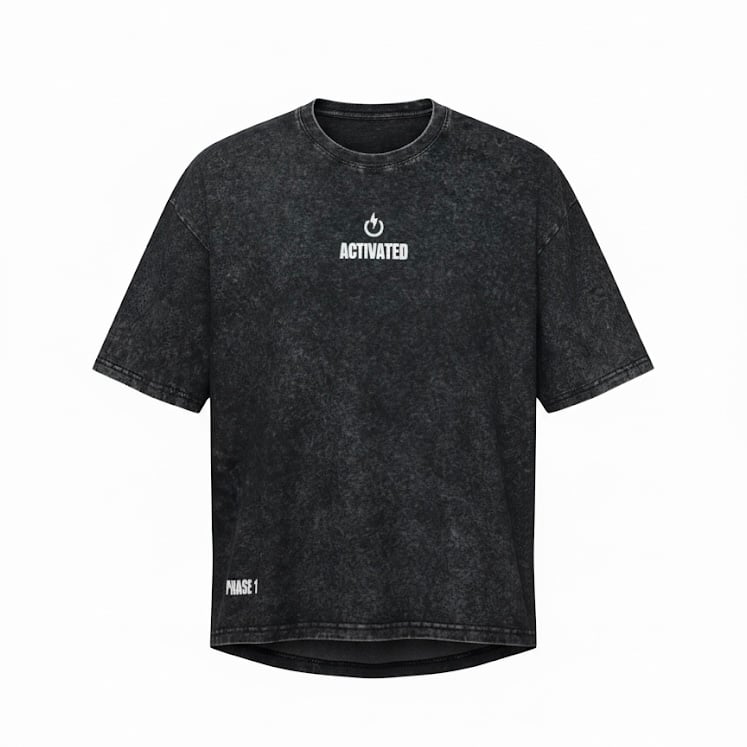 Finished in a natural Stone Wash tone with subtle logo detailing, the Phase 1 Shirt represents the start of the ACTIVATED journey — Born in Las Vegas. Grown in the Denver area. Join the future of performance.
